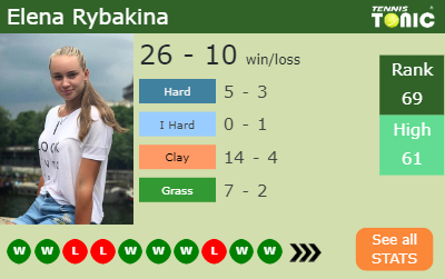 Rybakina has a 26-10 win-loss record in 2019, 5-3 on hard (See FULL STATS).