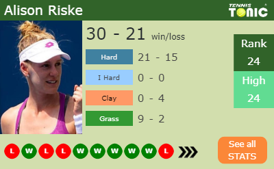 Alison has a 30-21 win-loss record in 2019, 21-15 on hard (See FULL STATS).