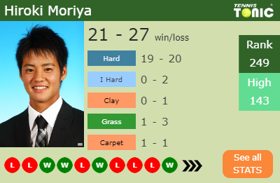 Hiroki has a 21-27 win-loss record in 2019, 19-20 on hard (See FULL STATS).