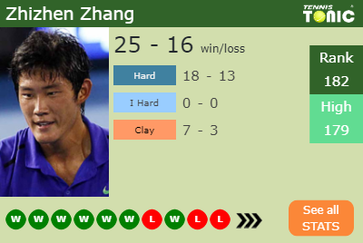 Zhizhen has a 25-16 win-loss record in 2019, 18-13 on hard (See FULL STATS).