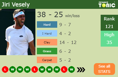 Vesely’s best result of the current year was getting to the semi-finals in the Ismaning Challenger,the Captif Challenger and the Canberra Challenger.