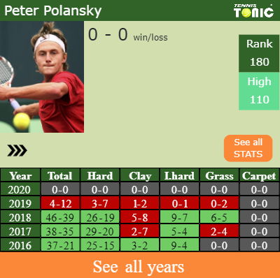 This will be the 2nd time that Peter Polansky and Alexandre Muller clash against each other. The head to head is 1-0 for Muller (see full H2H stats), but they have never competed against each other on hard.