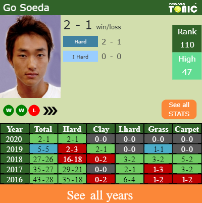 The last time that they locked horns, Soeda won 6-2 3-6 6-4 in the qualifications in at the Australian Open back in 2017.