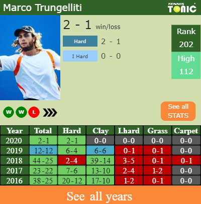 Marco has a 2-1 win-loss record in 2020, 2-1 on hard (See FULL STATS).
