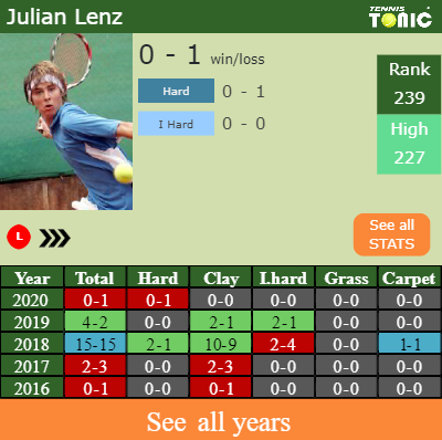 Talking about his overall career, Lenz has an overall 34-39 record. He has positive 9-5 record on hard.