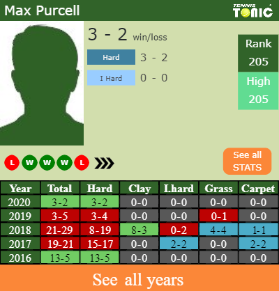 The Australian has a 3-2 win-loss record in 2020, 3-2 on hard (See FULL STATS).
