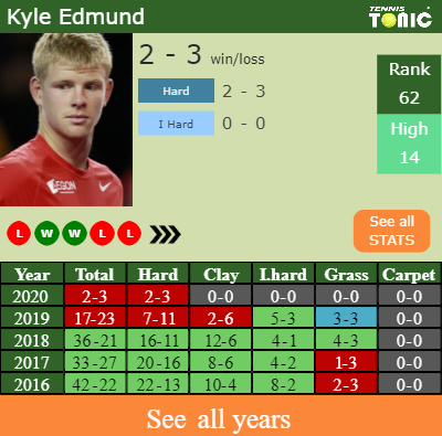 The Brit has a 2-3 win-loss record in 2020, 0-0 on indoor hard courts (See FULL STATS).