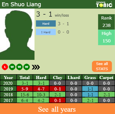 Shuo has a 3-1 win-loss record in 2020, 3-1 on hard (See FULL STATS).