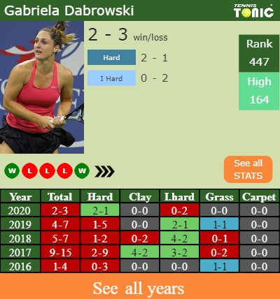Gabriela has a 2-3 win-loss record in 2020, 2-1 on hard (See FULL STATS).