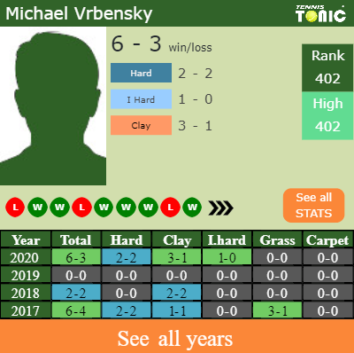 Vrbensky has a fantastic record in the last 4 years having won 100% of his matches (4-0). 1-0 on indoor hard courts in 2020. Talking about his performance on the same surface of this competition, Vrbensky has a 14-9 record in the last 4 years on indoor hard courts.