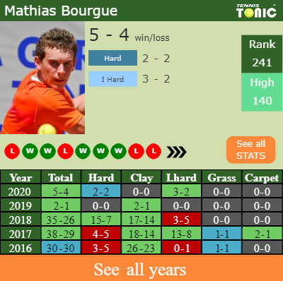 The French Player has a 5-4 win-loss record in 2020, 3-2 on indoor hard courts (See FULL STATS).