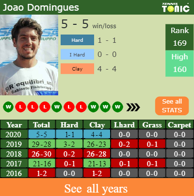Joao has a 5-5 win-loss record in 2020, 4-4 on clay (See FULL STATS).
