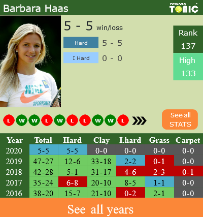 Talking about her overall career, Barbara has an overall 321-172 record. She has positive 172-86 record on clay.