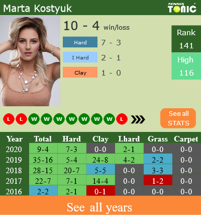 Marta has a 9-4 win-loss record in 2020, 0-0 on clay (See FULL STATS).
