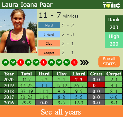 In terms of her career, Laura-Ioana has an overall 355-185 record. She has positive 192-104 record on clay.