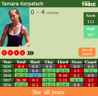 Talking about her overall career, Korpatsch has an overall 154-111 record. She has positive 107-51 record on clay.