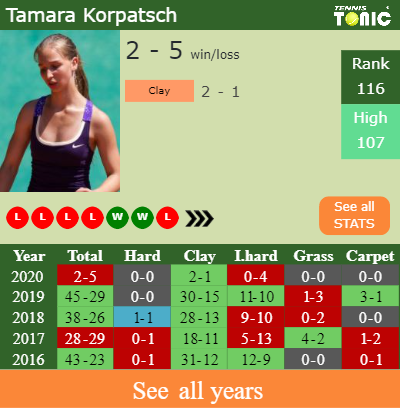 Korpatsch has a 2-5 win-loss record in 2020, 0-0 on hard (See FULL STATS).