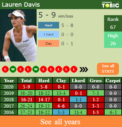 - Lauren DavisDavis – Jelena OstapenkoOstapenko (1-0) – H2H and prediction
