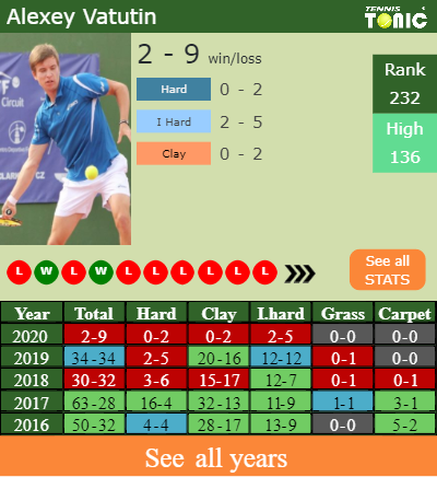 Vatutin has a 2-9 win-loss record in 2020, 0-2 on clay (See FULL STATS).