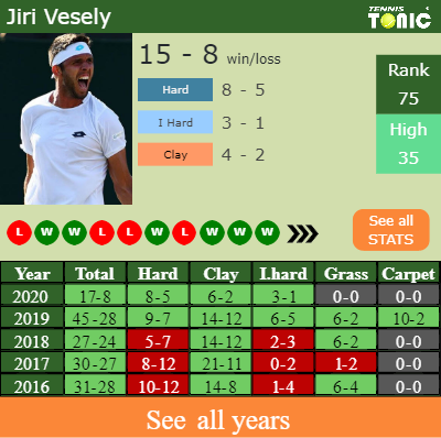 This will be the 2nd time that Ugo Humbert and Jiri Vesely fight against each other. The head to head is 1-0 for Vesely (see full H2H stats), but they have never competed against each other on clay.