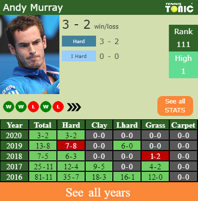 In terms of his career, Murray has an overall 782-239 record. He has positive 142-60 record on clay.