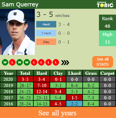 In terms of his career, Sam has an overall 473-345 record. He has flat 69-69 record on clay.