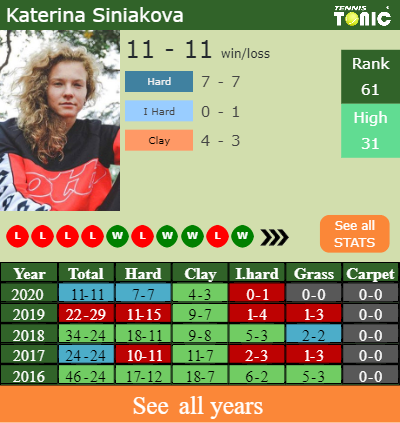 Katerina has a 11-11 win-loss record in 2020, 4-3 on clay (See FULL STATS).