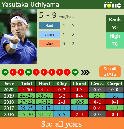 Uchiyama has a 5-10 win-loss record in 2020, 1-3 on indoor hard courts (See FULL STATS).