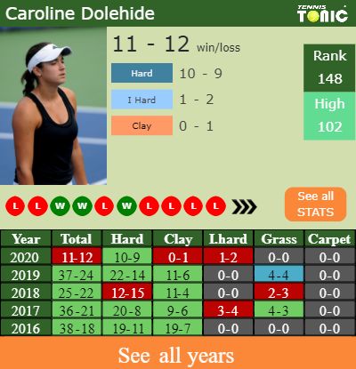 Talking about her overall career, Dolehide has an overall 175-111 record. She has positive 100-63 record on hard.