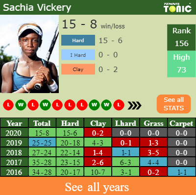 In terms of her career, Vickery has an overall 291-222 record. She has positive 185-136 record on hard.