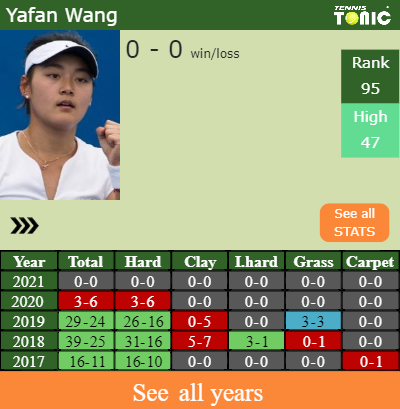 Talking about her overall career, Yafan has an overall 223-150 record. She has a positive 186-111 record on hard.