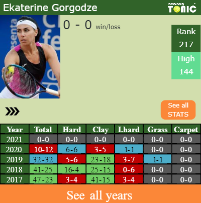 In terms of her career, Ekaterine has an overall 386-257 record. She has a positive 65-57 record on hard.
