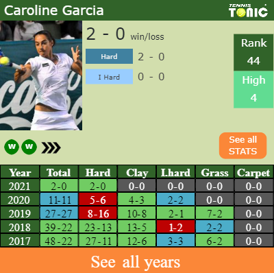 The last time that they played, Garcia won 6-2 6-3 in the Rubber 3 in 3 back in 2019.
