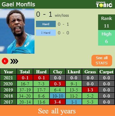 Gael has a 0-1 win-loss record in 2021, 0-1 on hard (See FULL STATS).