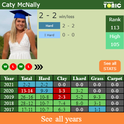 McNally has a 2-2 win-loss record in 2021, 2-2 on hard (See FULL STATS).