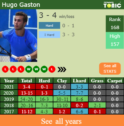 Gaston’s best result of the current season was getting to the semifinal in the Cherbourg Challenger.