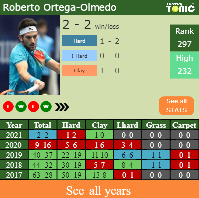 Ortega-Olmedo has a 2-2 win-loss record in 2021, 1-0 on clay (See FULL STATS).