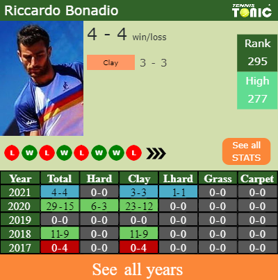 In terms of his career, Bonadio has an overall 59-42 record. He has a positive 48-35 record on clay.