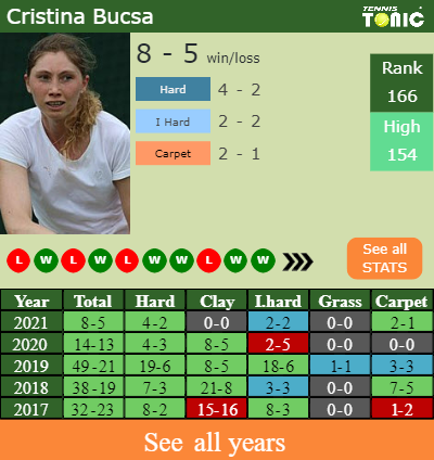 Bucsa hasn’t dropped yet a set in the tournament to win 56% of the points she played.