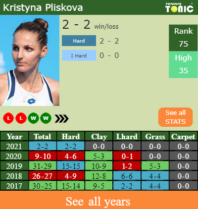 Pliskova has a 2-2 win-loss record in 2021, 2-2 on hard (See FULL STATS).