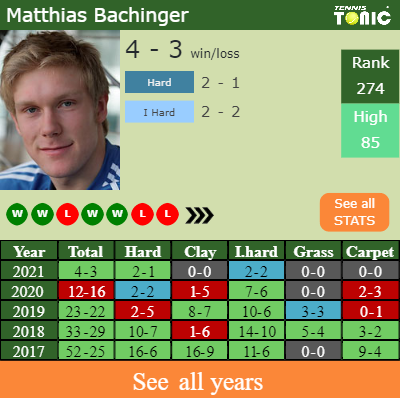 Talking about his overall career, Bachinger has an overall 534-433 record. He has a positive 142-104 record on indoor hard courts.