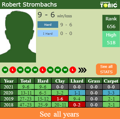 Strombachs has a 9-6 win-loss record in 2021, 0-0 on indoor hard courts (See FULL STATS).