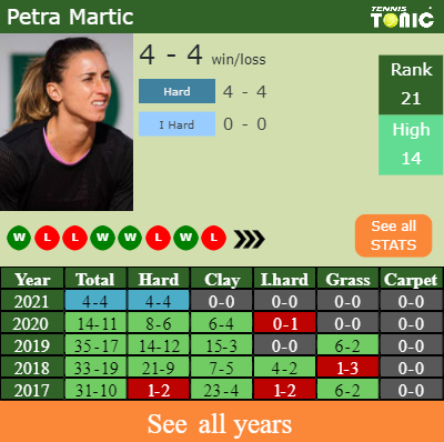 Martic has a 4-4 win-loss record in 2021, 4-4 on hard (See FULL STATS).