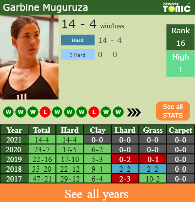 Garbine has a 14-4 win-loss record in 2021, 14-4 on hard (See FULL STATS).