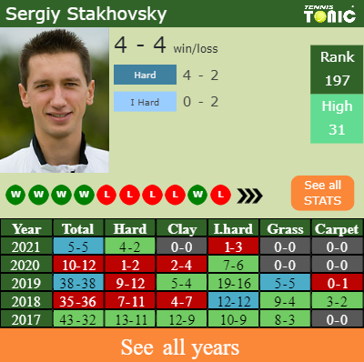 Talking about his overall career, Stakhovsky has an overall 665-542 record. He has a positive 199-145 record on indoor hard courts.