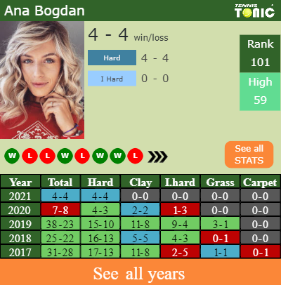Bogdan has a 4-4 win-loss record in 2021, 0-0 on indoor hard courts (See FULL STATS).