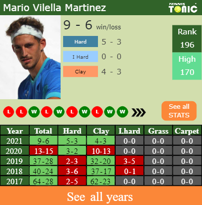 Mario has a 9-6 win-loss record in 2021, 4-3 on clay (See FULL STATS).
