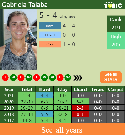 The Romanian has a 5-4 win-loss record in 2021, 1-0 on clay (See FULL STATS).