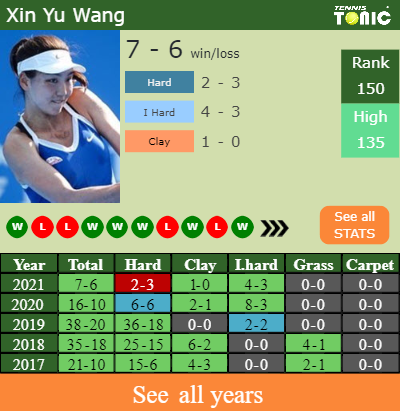 Xin has a 7-6 win-loss record in 2021, 1-0 on clay (See FULL STATS).
