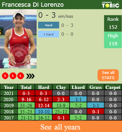 Di Lorenzo has a 0-3 win-loss record in 2021, 0-0 on clay (See FULL STATS).